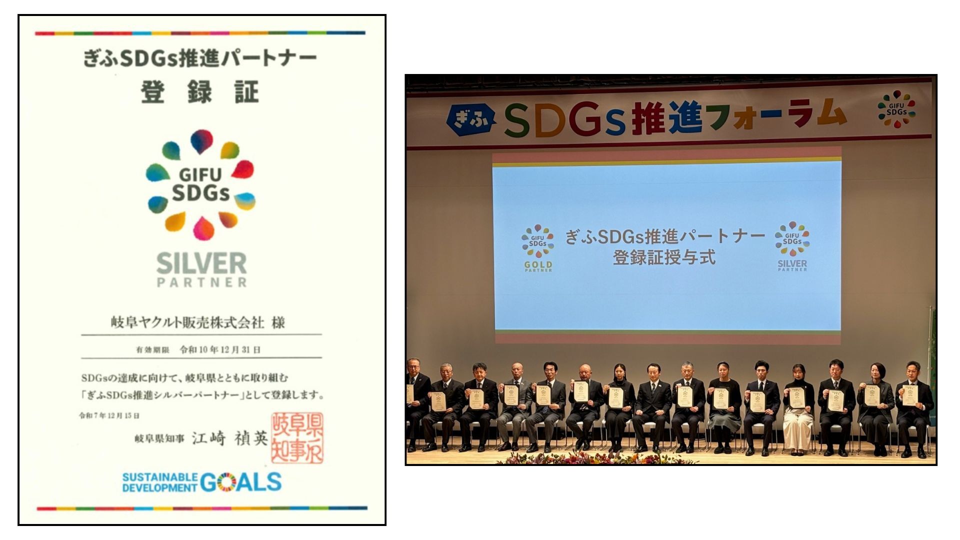 このたび、「ぎふSDGs推進パートナー」のシルバーパートナーとして登録していただきました。